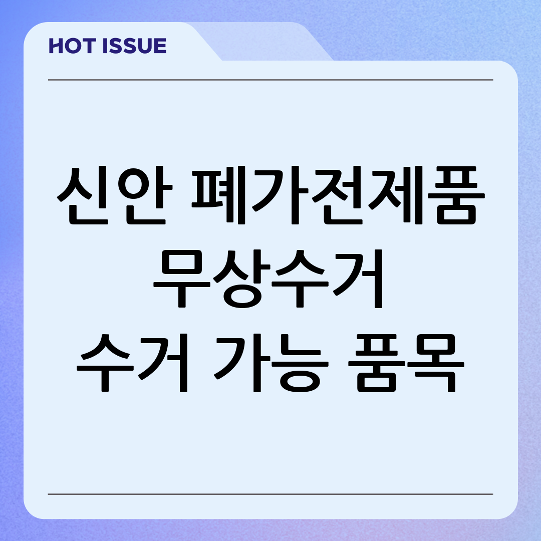 안녕하세요, 신안군민 여러분! 오늘은 우리 생활에서 뗄 수 없는 폐가전제품 처리 문제에 대한 명쾌한 해결책을 제시하고자 합니다. 바로 신안 폐가전제품 무상수거 서비스입니다. 더 이상 고장난 냉장고, 세탁기, TV 때문에 골머리를 앓거나, 무거운 가전제품을 들고 힘들게 폐기물 처리장을 방문할 필요가 없습니다. 신안군에서는 군민들의 편의를 위해 폐가전제품을 무상으로 수거하는 서비스를 제공하고 있습니다. 이 글에서는 신안 폐가전제품 무상수거 서비스의 모든 것을 낱낱이 파헤쳐, 여러분이 쉽고 편리하게 이 서비스를 이용할 수 있도록 돕겠습니다. 수거 가능 품목부터 신청 방법, 주의사항까지, 지금부터 함께 알아볼까요?
