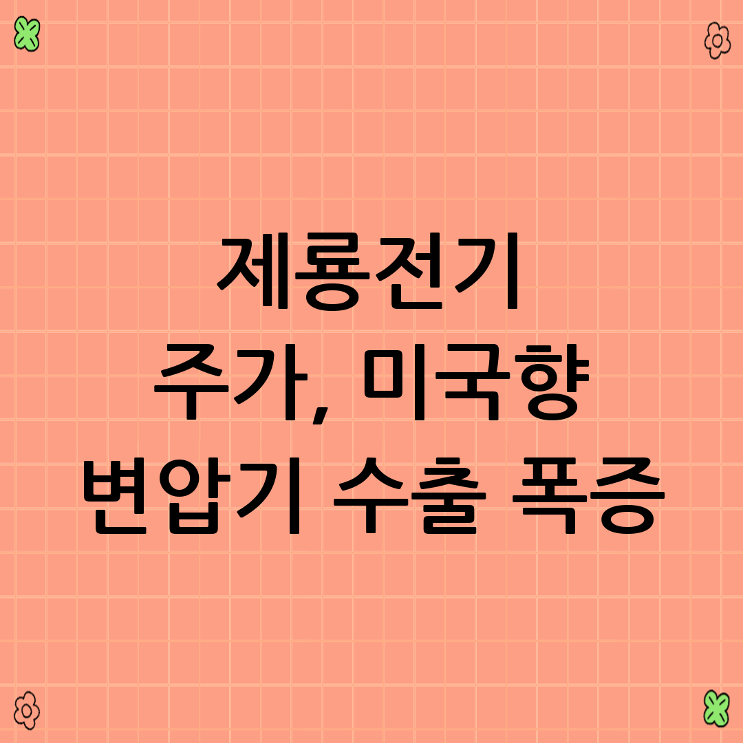 최근 제룡전기 주가가 심상치 않습니다. 미국향 변압기 수출이 폭증하면서 투자자들의 관심이 집중되고 있는데요. 과연 이 상승세는 지속될 수 있을까요? 미국향 변압기 수출 폭증이라는 키워드를 중심으로 제룡전기의 현재 상황을 심층 분석하고, 앞으로의 투자 전략을 제시해 드립니다.