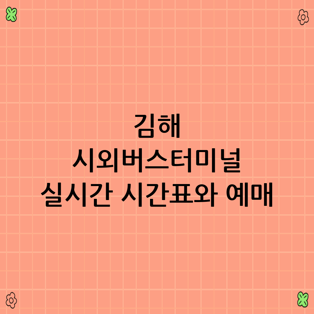 - 교통편: 김해 시외버스터미널은 대중교통 접근성이 좋습니다. 시내버스, 택시 등을 이용하여 편리하게 이동할 수 있습니다.