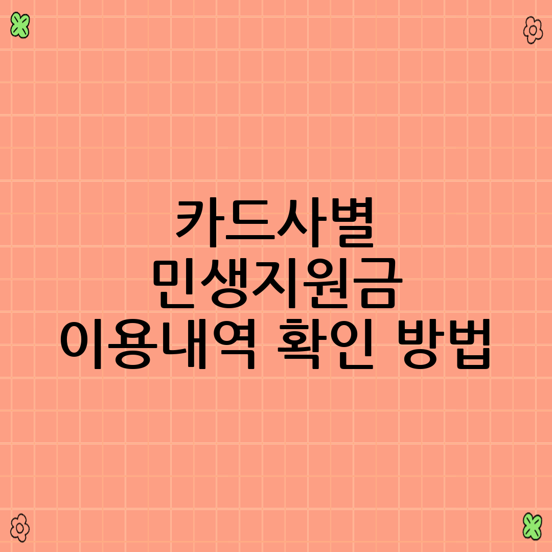 각 카드사별로 민생지원금 이용내역을 확인하는 방법은 조금씩 다를 수 있습니다. 하지만 대부분의 카드사에서 홈페이지, 앱, 고객센터 등의 다양한 채널을 통해 이용내역을 제공하고 있습니다. 지금부터 주요 카드사별로 민생지원금 이용내역을 확인하는 방법을 자세히 살펴보겠습니다.