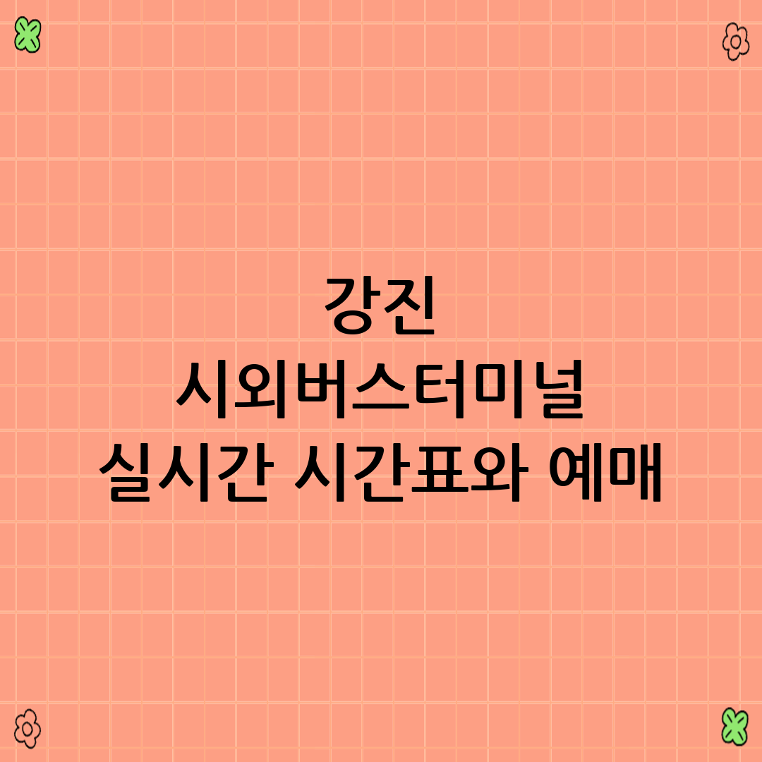 주의사항: 온라인 예매 사이트 외에도 강진 시외버스터미널에 직접 전화하여 시간표를 확인할 수 있지만, 실시간 변동 사항이 반영되지 않을 수 있으므로 온라인 예매 사이트를 이용하는 것을 권장합니다.