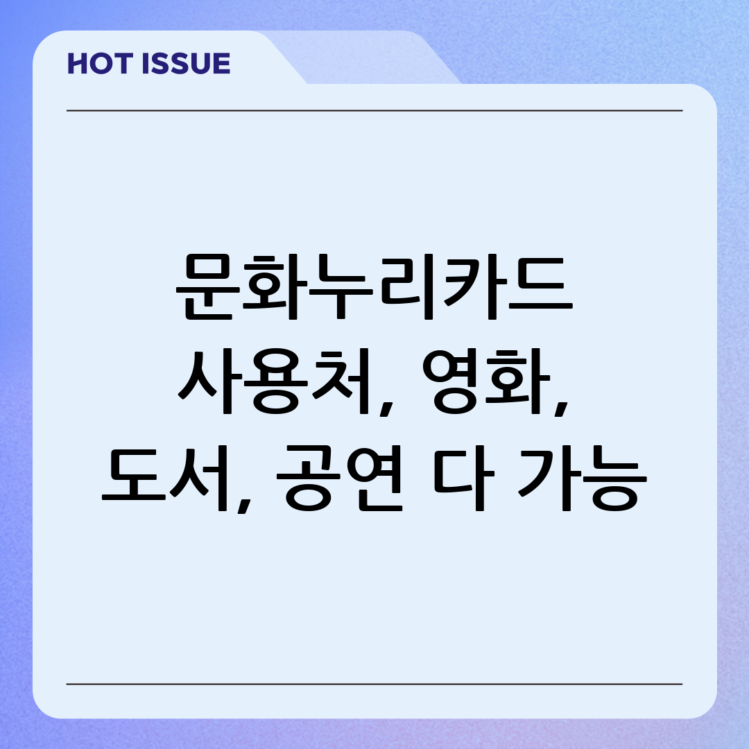 지금까지 문화누리카드 사용처에 대해 정말 자세하게 알아보았습니다. 영화, 도서, 공연과 같은 기본적인 사용처부터 온라인 콘텐츠, 스포츠 관람, 국내 여행에 이르기까지 그 활용 범위가 정말 무궁무진하다는 것을 확인하셨을 겁니다. 이제 문화누리카드는 더 이상 '어디에 써야 할지 막막한 카드'가 아니라, '무엇을 먼저 해볼까 설레는 카드'가 되었을 것입니다.