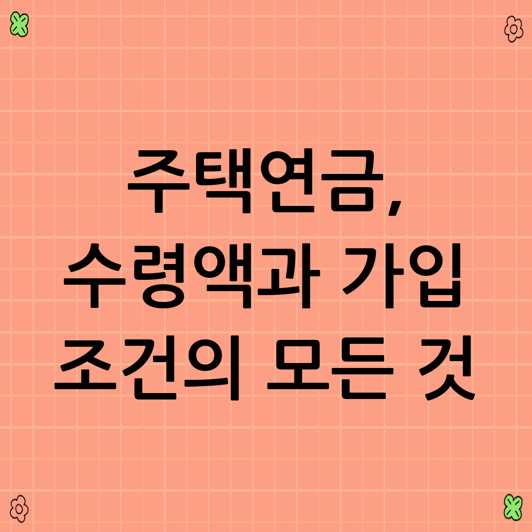 주택연금 수령액과 가입 조건 완벽 분석: 노후 준비 가이드