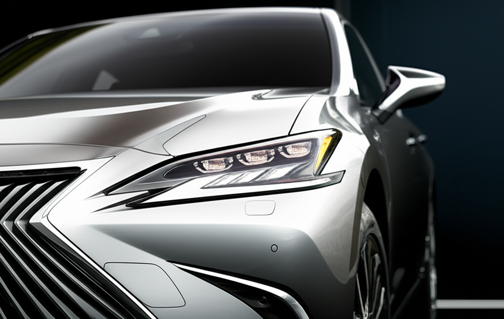 렉서스 ES300h는 우아함과 역동성이 공존하는 디자인을 자랑합니다. 전면부의 거대한 스핀들 그릴은 렉서스의 상징이자 강렬한 존재감을 드러냅니다. 날렵하게 뻗은 'L'자형 주간 주행등과 어우러져 세련되고 미래지향적인 인상을 완성합니다. 측면부는 쿠페처럼 유려하게 떨어지는 루프 라인과 선명한 캐릭터 라인이 조화를 이뤄, 차체가 실제보다 더 길고 낮아 보이는 시각적 효과를 줍니다.