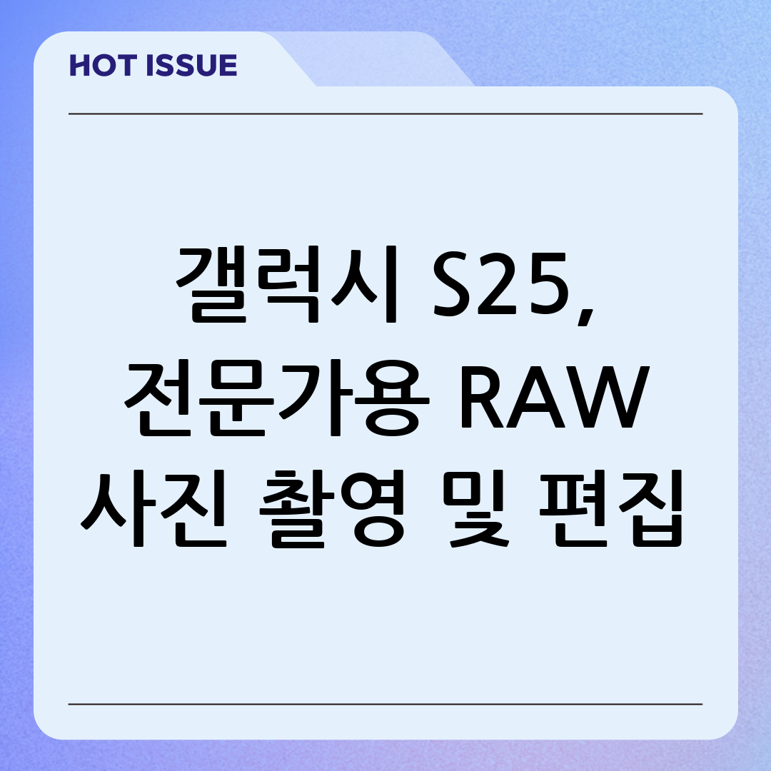 갤럭시 S25: 전문가용 RAW 사진 촬영 및 편집 완벽 가이드
